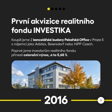 Naše vlajková loď, INVESTIKA realitní fond, si s 60 budovami ve 4 zemích, více než 400 nájemci a téměř 24 miliardami korun pod správou vydobyl pozici největšího nebankovního fondu pro drobné investory v Česku a na Slovensku – a získal i několik prestižních ocenění.