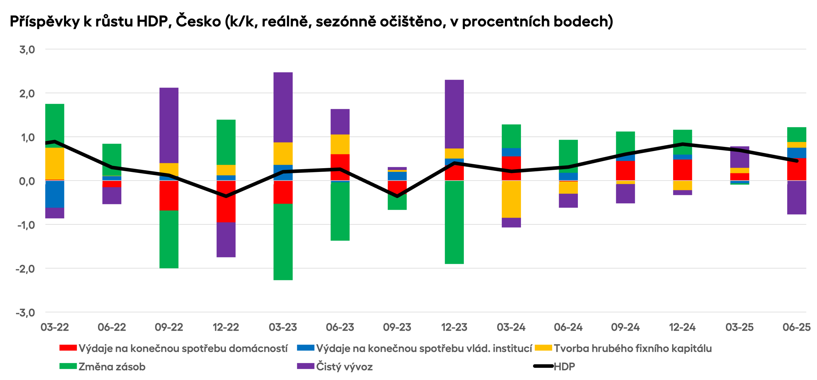 Letošní druhý kvartál přinesl české ekonomice několik příjemných překvapení. Mezičtvrtletní růst HDP dosáhl solidních 0,5 %, meziroční pak 2,6 %, tedy nejvíce za poslední tři roky. Podle očekávání na tom měla významný podíl rostoucí spotřeba domácností, nicméně přidaly se k ní i firemní investice a solidní úroveň si překvapivě udržel také vývoz zboží.