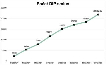 Rok 2025 přinesl potvrzení, že úspěch DIPu nebyl náhodný. Už v polovině roku počet smluv překročil 170 tisíc a objem majetku dosáhl 4,5 miliardy korun. Zájem investorů nepolevoval ani v dalších měsících a tempo růstu naznačovalo, že hranice 200 tisíc smluv bude brzy překonána.
